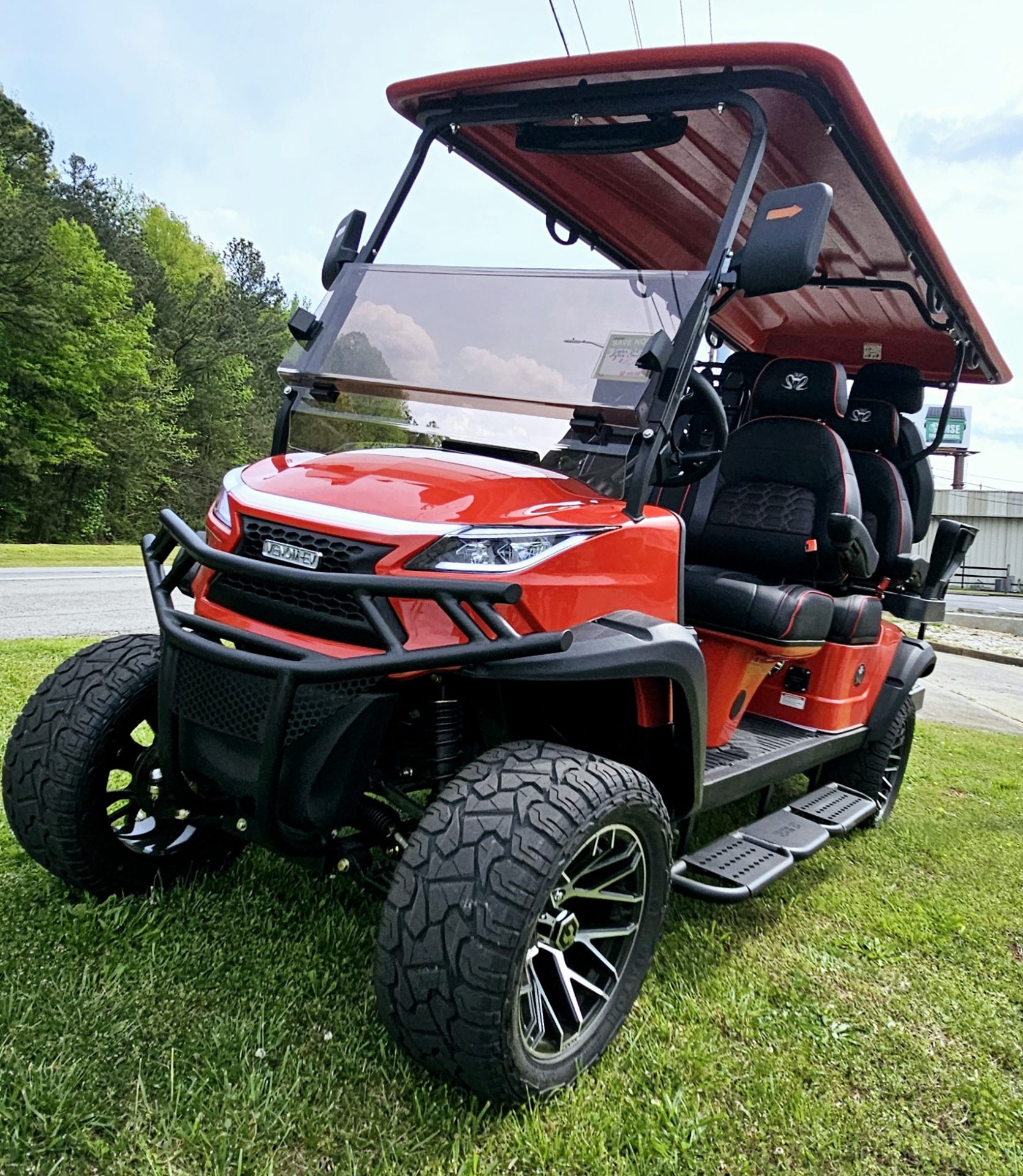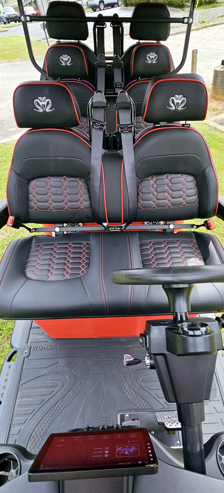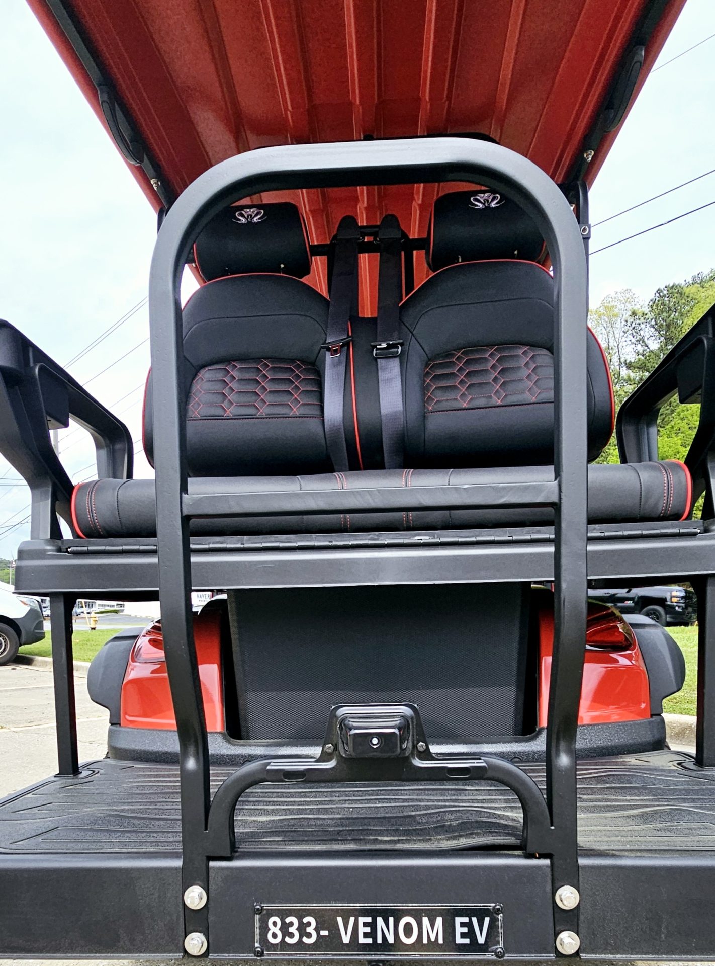 2025 Venom EV 6 seater strike 4+2 electric golf cart in fire engine red with color matched seating